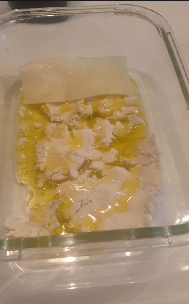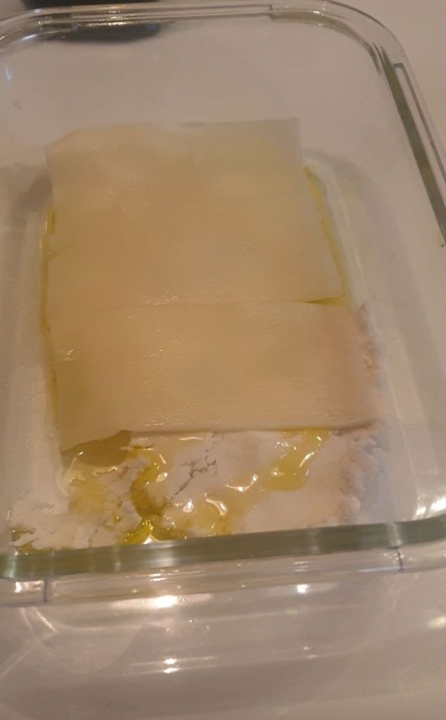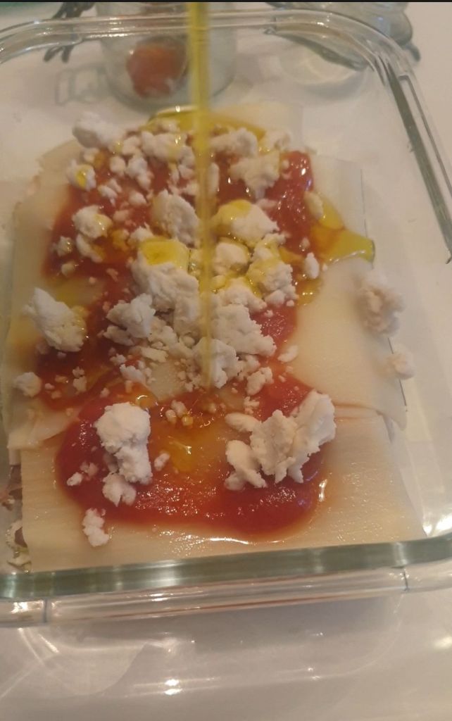Y para preparar la lasaña lo he hecho en un tupper de vidrio que puedo llevar a la airfryer.