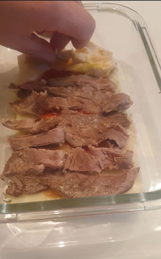 En mi caso, y en mi defensa, yo quería hacerlo con carne picada, pero como estaba congelada, y no tenía tiempo, lo hago con lo hay en la nevera