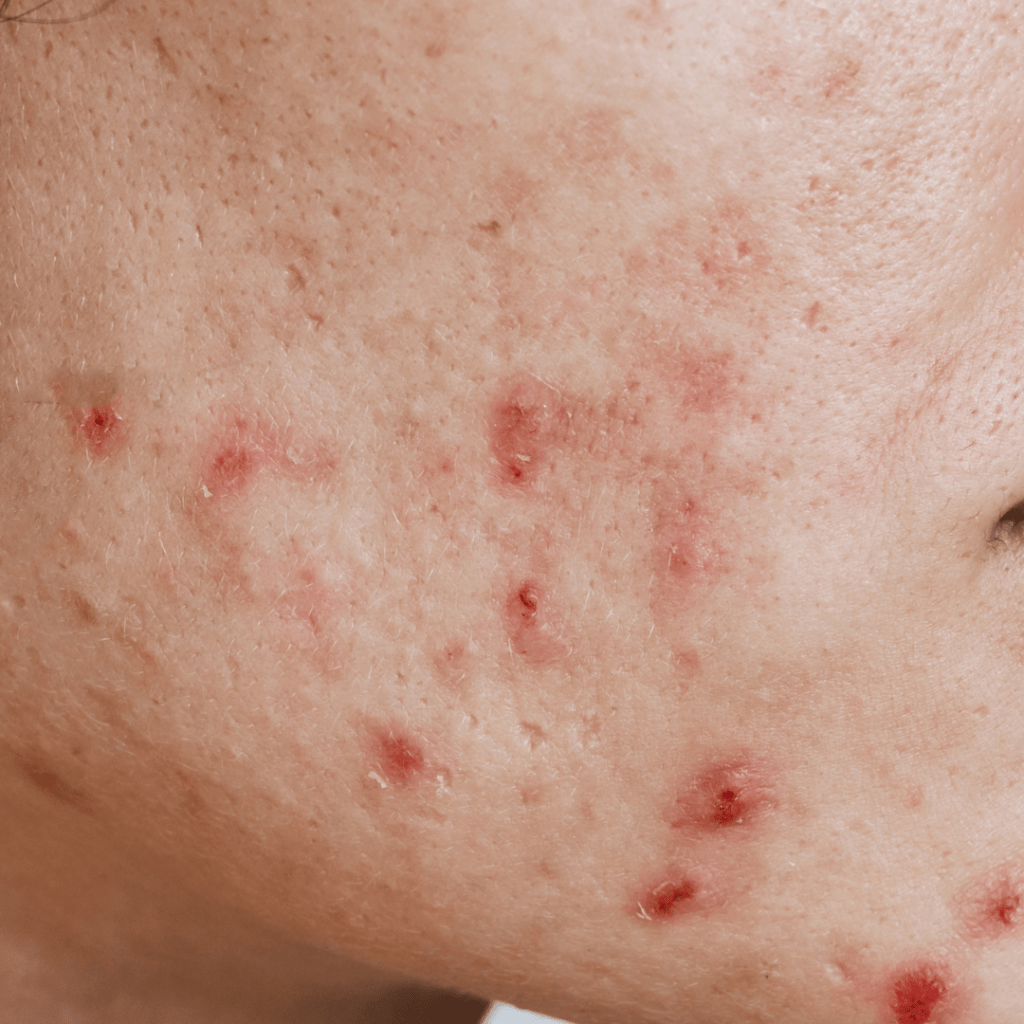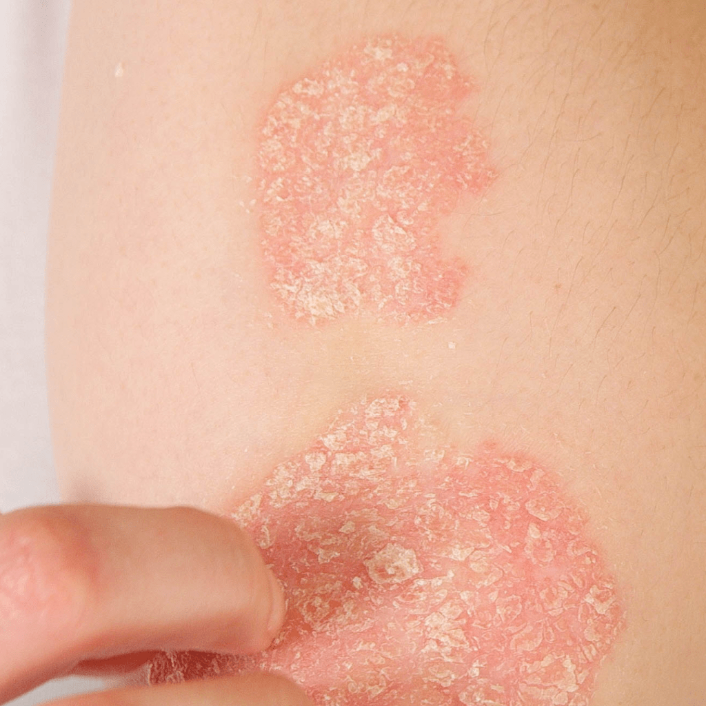 ✔️ Zonas inflamadas, enrojecidas y con descamación.